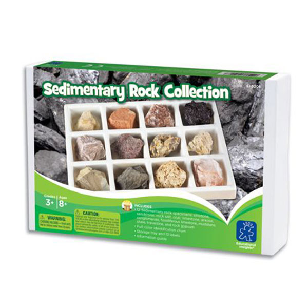 Features handpicked specimens, identification chart and more! Includes: Siltstone, Sandstone, Rock Salt, Coal, Limestone, Arkose, Conglomerate, Fossilferous Limestone, Mudstone, Shale, Travertine and Rock Gypsum.